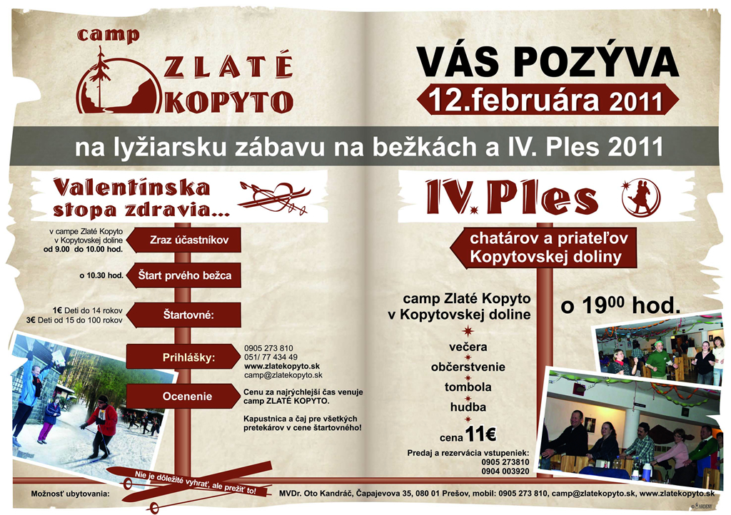 Pozývame Vás a Vašich priateľov do krásne zasneženej Kopytovskej doliny na tradičné akcie. Valentínsku stopu zdravia a Ples chatárov a priateľov Kopytovskej doliny. Prosím, z organizačných dôvodov, nám čo najskôr potvrdite svoju účasť. Ďakujeme. Kandráčovci