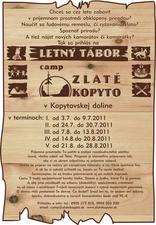 Hurá prišlo leto a s ním prázdniny. Možno ešte nie všetky vaše ratolesti majú program na leto a tak ponúkame pre nich dobrodružstvo oddychu a adrenalínu (môžu sa pridat aj dospelí v utajení). Do skorého videnia Oto. Viac info na plagáte …