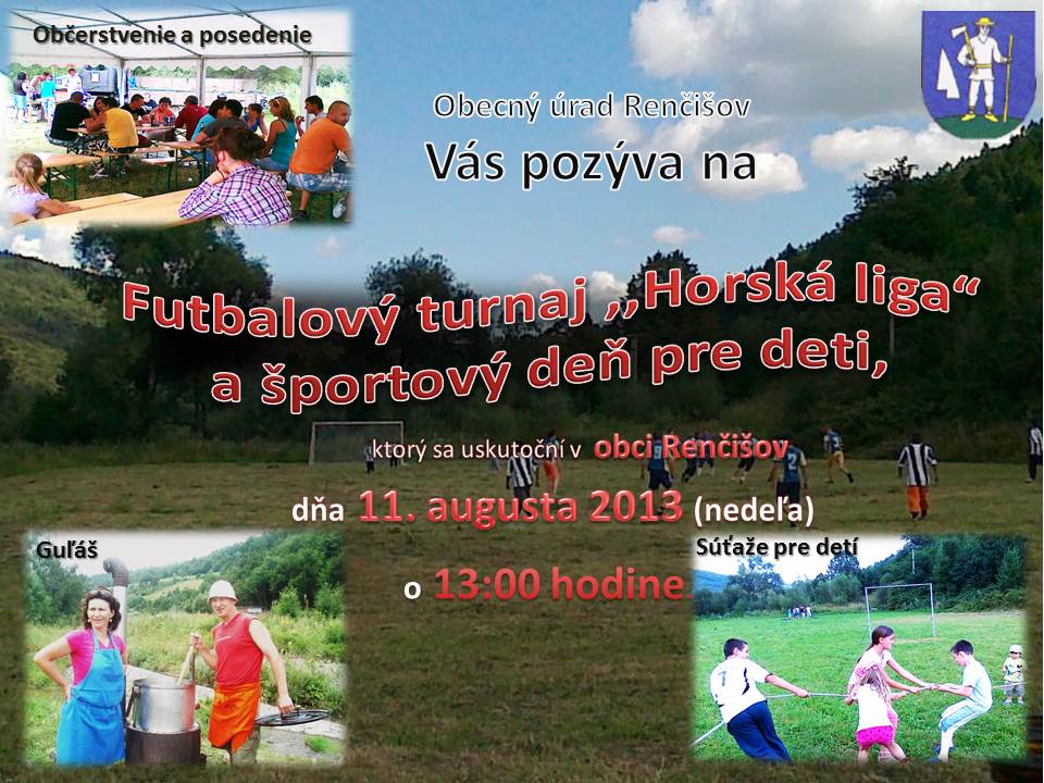 Obec Renčišov Vás pozýva na futbalový turnaj ,,Horská liga“. Viac info na plagáte.